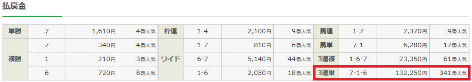 7-1-6の3連単的中!
