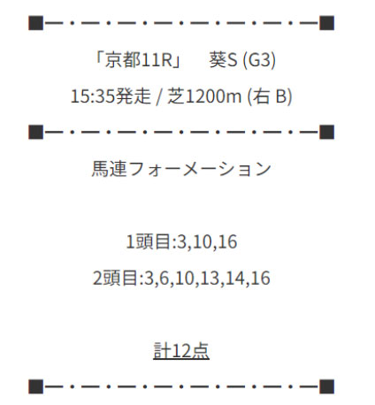 京都競馬場11Rの葵S(G3)の予想になります。