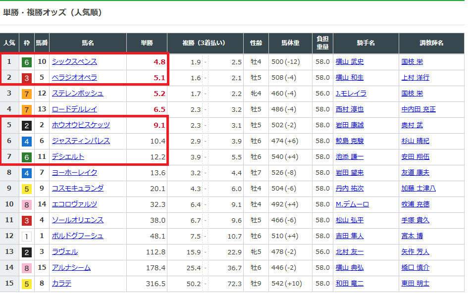 選んだ馬のオッズを見てみると、