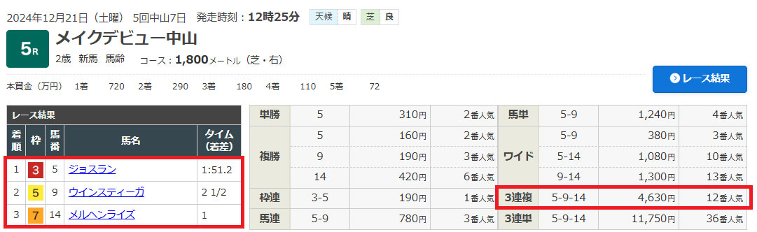 まずは土曜日に公開されていた情報で中山競馬場の5Rと7Rを選んでみました。