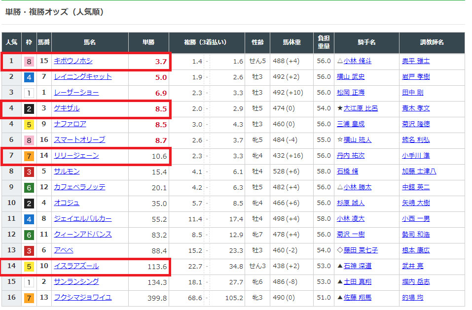 選んだ馬のオッズはというと…
