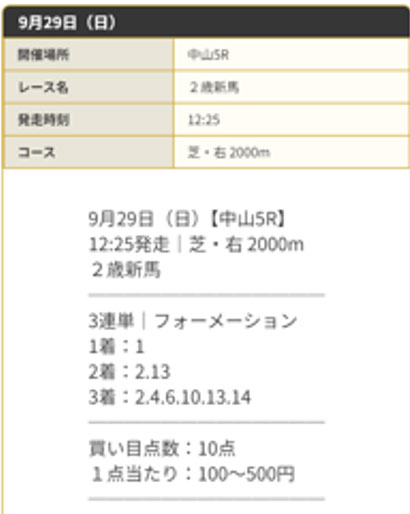 まずは9月21日 (土)に公開されていた買い目がこちらになります。