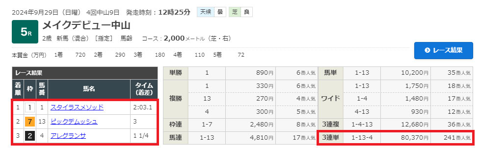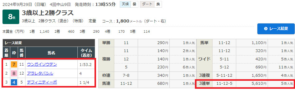 まずは中山5Rの結果を見ていきましょう。