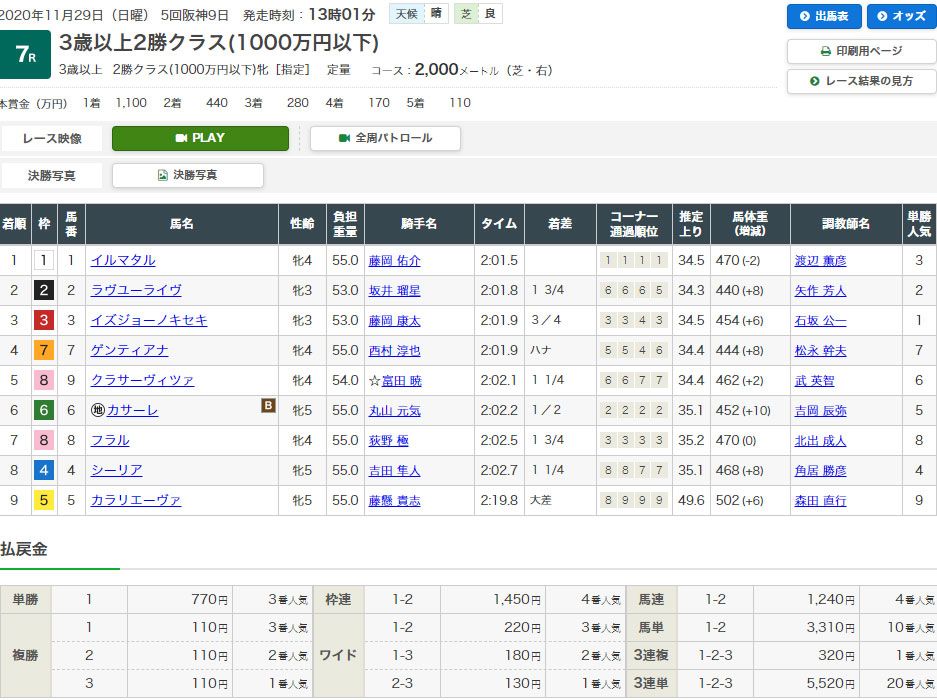 同じ競馬情報会社でも【勝ちうま常勝理論】は11月の無料情報で60万円の一撃的中がありましたし【馬貴族】は的中本数32本、11月無料情報的中総額は77万9970円と稼げるサイトがあるので相性などもあるかもしれません。