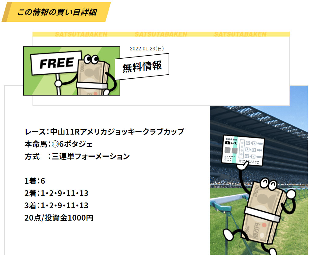 今回検証したのはサツタバケンという予想サイトの「無料情報」検証です。
