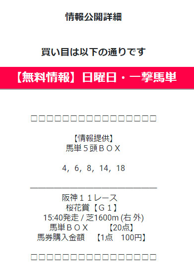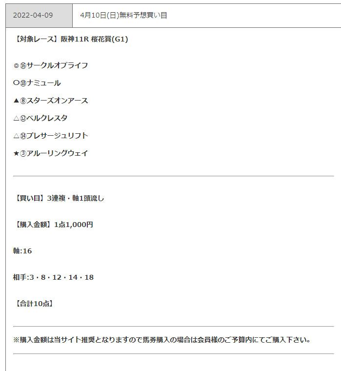 予想にも納得出来ず、結果も伴わない無料情報であった。