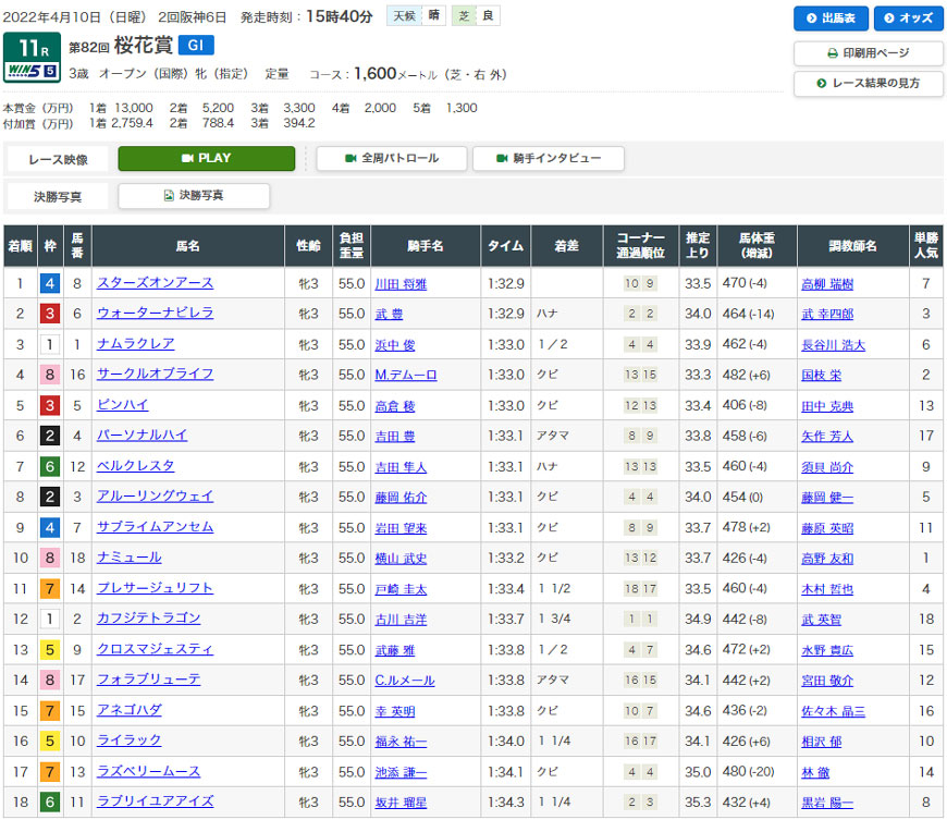 結果は⑧スターズオンアースが勝利し2着に⑥ウォーターナビレラ!