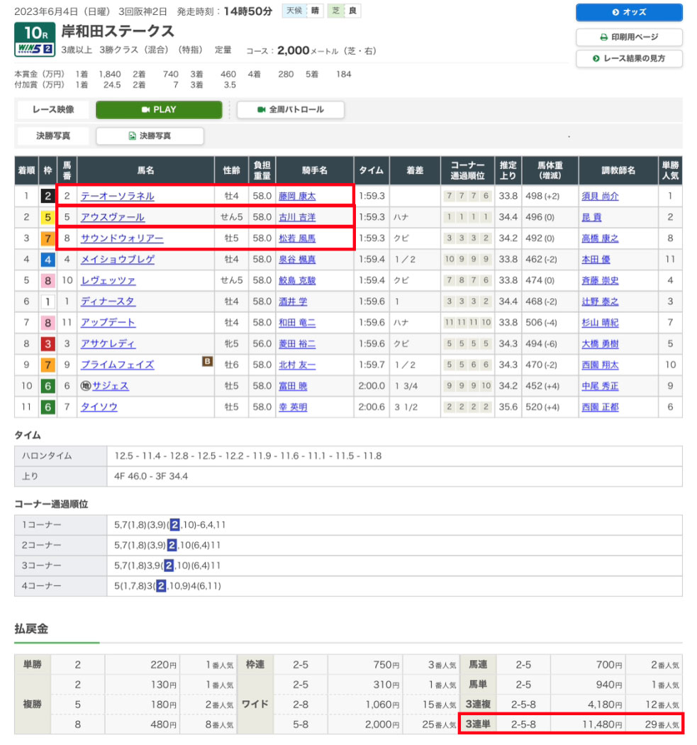 穴党の馬券なので当たったら配当が大きいことを期待しつつ結果を見ていきましょう。