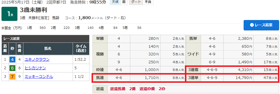 5月17日・東京3レース 3歳未勝利 ダート1300m