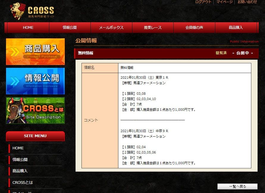 週末、無料買い目情報を公開しているようでしたので悪徳サイトの実態を暴くために実力の程を検証してみたのでしっかりと詐欺サイトの実態を目に焼き付けていただき、詐欺被害に合わない為にも管理人の田中が受けた詐欺報告をご確認ください。