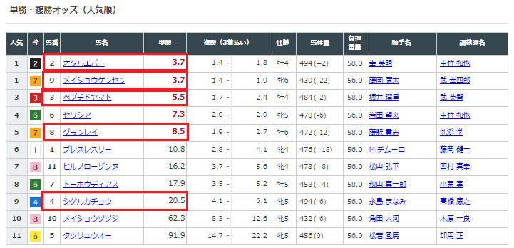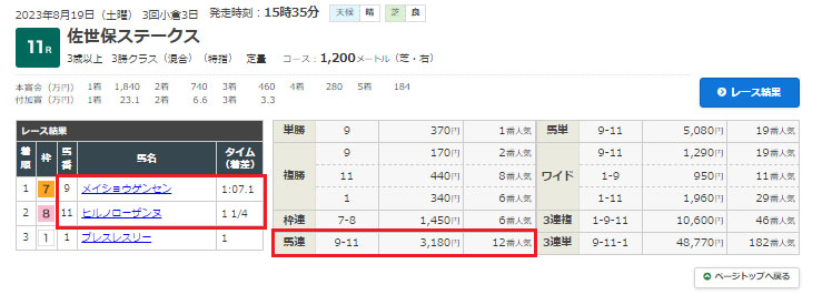 人気の⑨メイショウゲンセンは来ましたが、⑪ヒルノローザンヌは切ってしまっていましたね。