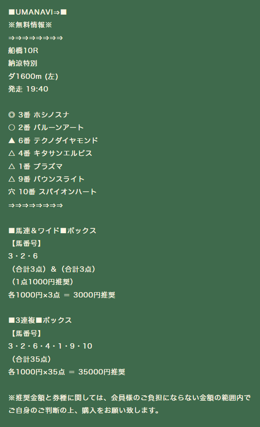 UMANAVI今開催の船橋好調っスね!