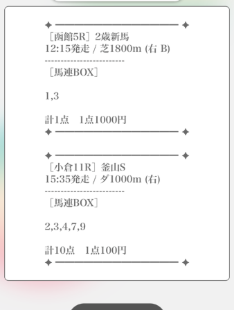 やっすい配当のレースしか狙わんよ だからほとんどトリガミか負けるのどっちかw 使わない方がいいべ