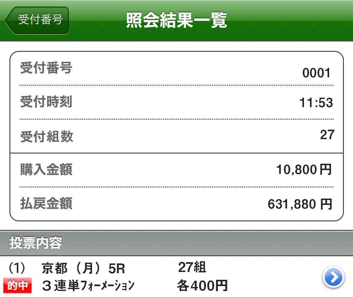 馬券代を考えたうえでも配当額を見れば許せる範囲内です、リピ確定ですね。