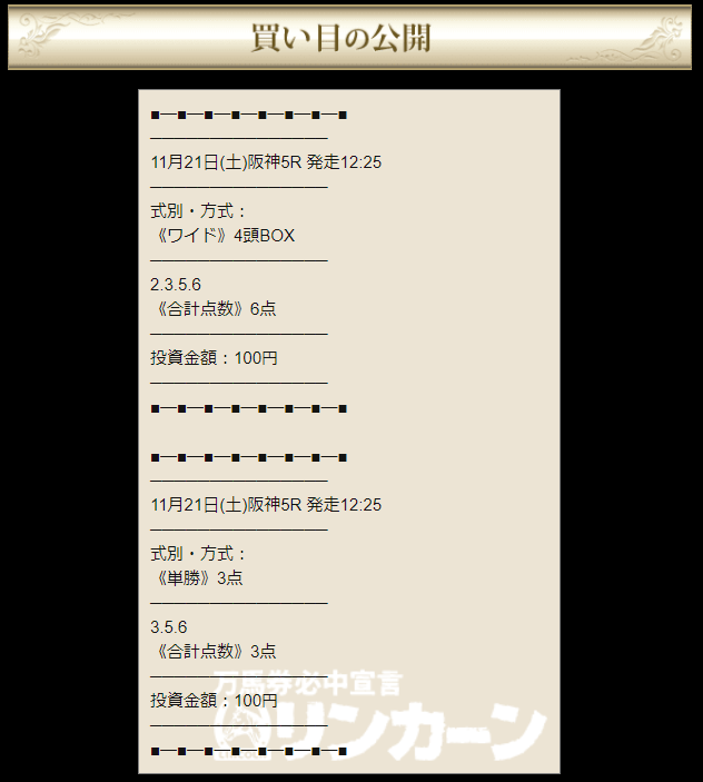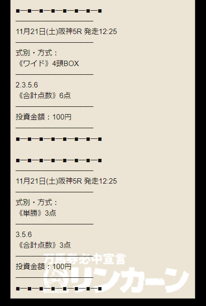 ワイドと単勝の的中を無料で貰えました!